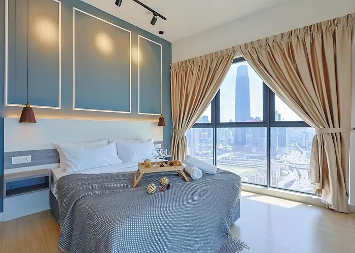 Das 90 m² große Apartment Luxurious Trx Corner Dual Balconies 2 Bedrooms Kuala Lumpur befindet sich im Bezirk Pudu von Kuala Lumpur, nur 5 Minuten Fußweg von der U-Bahn-Station Cochrane entfernt. Die Gäste können sich nach einem langen Tag in einem privaten Swimmingpool entspannen.